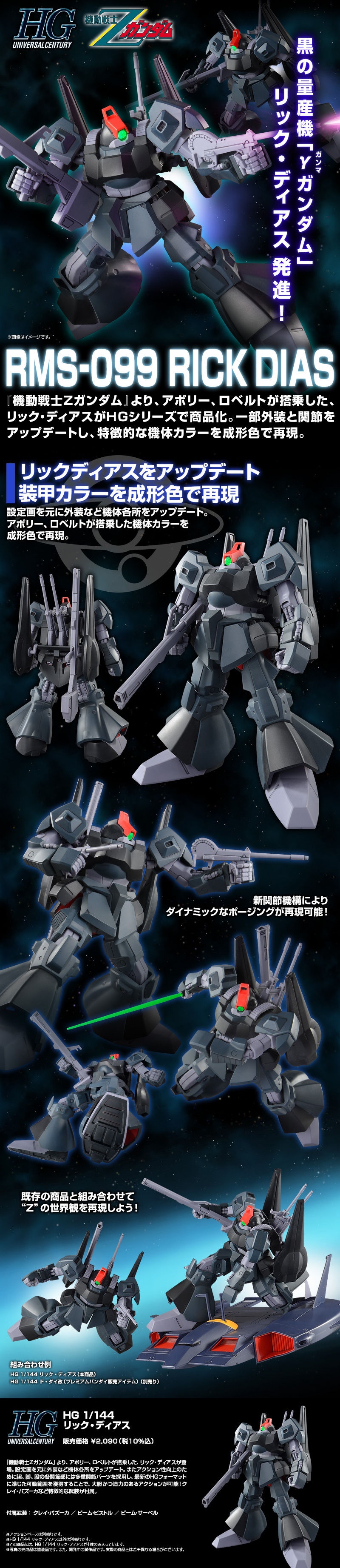 『機動戦士Zガンダム』より、アポリー、ロベルトが搭乗した、リック・ディアスがHGシリーズで商品化。